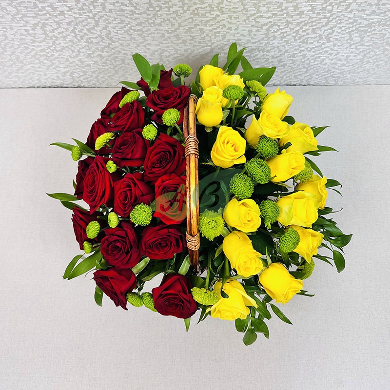 Как удивить любимую? Подарите ей композицию из желтых и красных роз в корзинке. Это очень нестандартный букет, который оценит по достоинству та, что любит быть не как все.